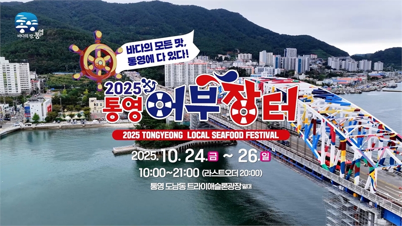 [더코리아저널 박현상 기자] 통영 도남동 트라이애슬론광장 일대에서 오는 24일(금)부터 26일(일)까지 3일간「2025 통영어부장터축제」가 열린다.올해 축제는 국내 최정상 셰프 7인의 미식 무대와 가족 단위 체험형 프로그램, 대폭 확충된 편의시설을 통해‘가족 참여형 수산물축제’로 한층 업그레이드됐다. 이번 축제에는 장호준