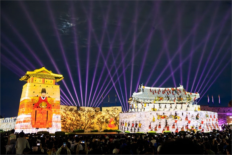 [더코리아저널 전영순 기자] 16일 동안 세계유산 수원화성 일대를 빛으로 물들였던 ‘2025 수원화성 미디어아트’ 축제에 관람객 51만여 명이 찾았다.2025 수원화성 미디어아트는 ‘만천명월(萬川明月); 정조의 꿈, 빛이 되다’ 시즌5 ‘새빛 향연(饗宴)’을 주제로 지난 9월 27일부터 10월 12일까지 화서문·장안공원