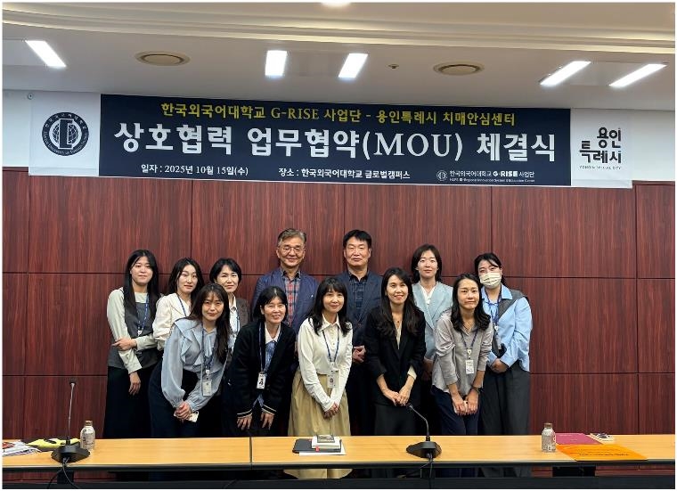 [더코리아저널 전영순 기자] 용인특례시(시장 이상일) 3개 구 보건소 치매안심센터는 지난 15일 한국외국어대학교RISE(지역혁신중심 대학지원체계)사업단과 지역사회 치매 관리를 위한 업무협약을 했다고 16일 밝혔다.이날 협약은 두 기관이 상호 협력 체계를 구축하고, RISE사업의 일환인 치매 예방 프로그램의 원활한 운영과