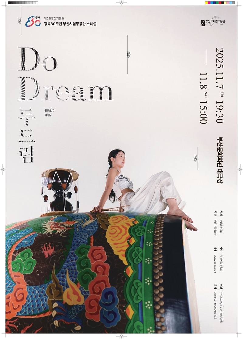[더코리아저널 김종섭 기자] 부산시립무용단(예술감독 이정윤)은 제92회 정기공연으로 을 11월 7일(금)부터 8일(토)까지 부산문화회관 대극장에서 선보인다.이번 공연은 광복 80주년 스페셜 공연으로 오늘을 살아가는 추몽인(追夢人)들의 열망을 담은 몸짓이자 세상을 향한 도전에 대해 이야기하고 표현한 공연으로 대고, 바라 등