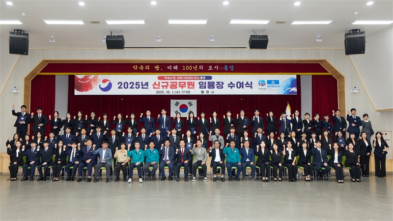 [더코리아저널 박현상 기자] 통영시(시장 천영기)는 지난 1일 통영시청 강당에서 72명의 신규공무원을 대상으로 임용장 수여식을 개최하고, 오는 13일부터 행정 일선에 배치돼 본격적인 업무를 시작하게 된다고 10일 밝혔다.이번에 임용된 신규 공무원은 72명으로 직렬별 인원은 ▲행정직 22명 ▲ 시설직 11명 ▲사회복지직