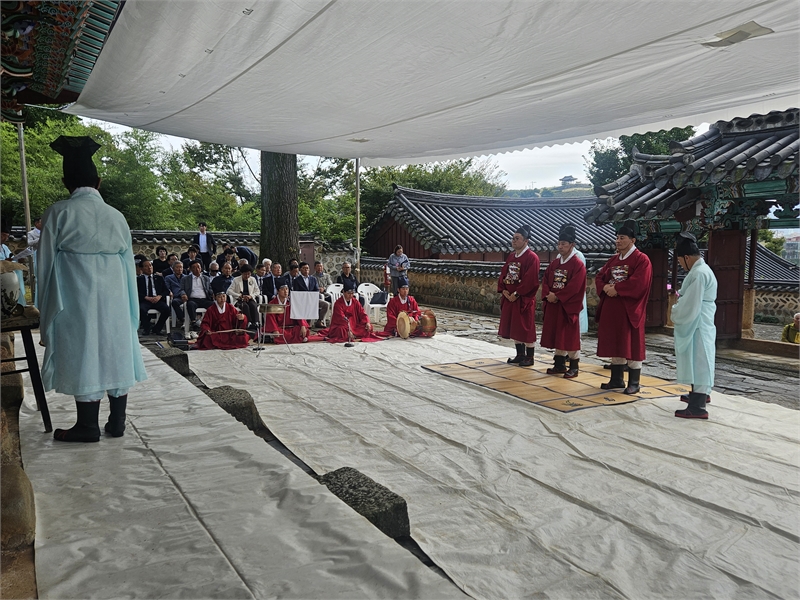 [더코리아저널 박현상 기자] 통영시(시장 천영기)는 이순신 장군의 호국정신을 계승하고 그 위훈을 기리기 위한 ‘2025 을사년 충무공 이순신 장군 추계제향’이 지난 5일 오전 11시 통영충렬사에서 재단법인 통영충렬사(이사장 박상재) 주관으로 제관 및 일반시민, 관람객 등 100여 명이 참석한 가운데 엄숙히 봉행됐다.이번