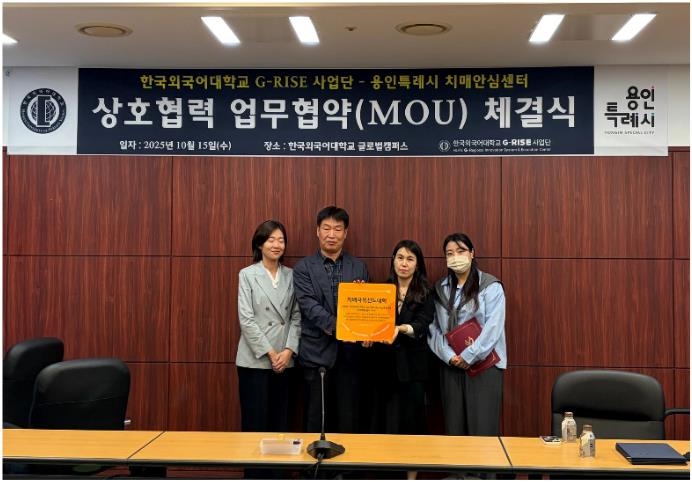 또 이날 처인구보건소 치매안심센터는 한국외대 ‘투어리즘&웰니스학부’를 ‘치매극복선도대학’으로 지정하고, 현판을 전달했다.
