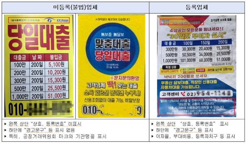 불법대부광고 명함형 전단지 유형(예시) [사진=서울시]