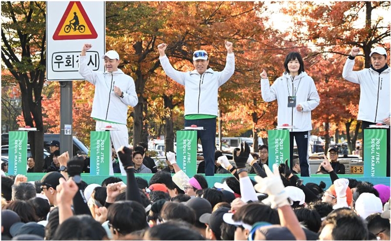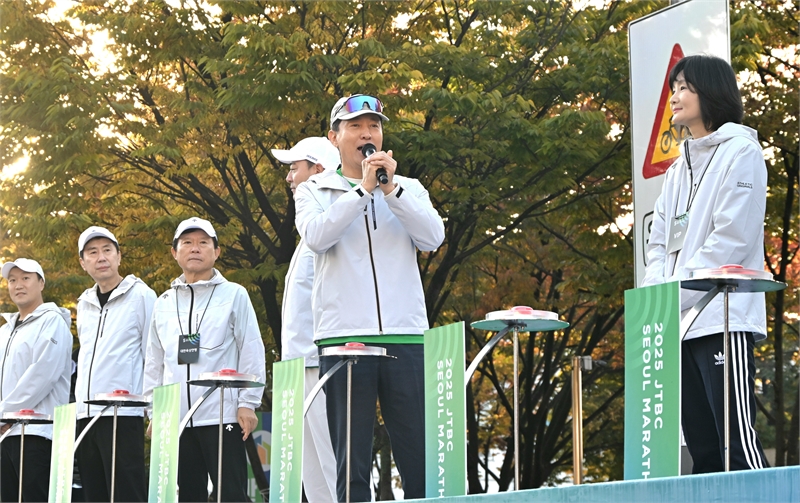[더코리아저널 전영순 기자] 오세훈 서울시장은 2일(일) 07시 30분 상암월드컵공원(마포구 상암동)에서 열린 ‘2025 JTBC 서울마라톤’ 출발식에 참석해 대회 개최를 축하하고 출전 선수들의 안전한 완주를 응원했다.