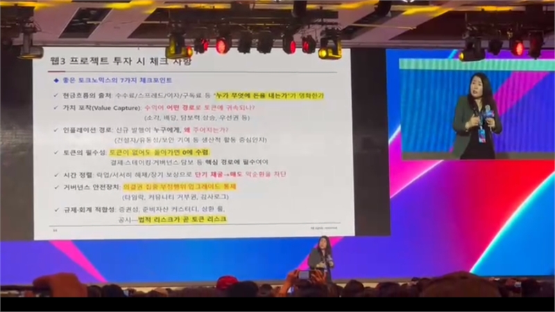 안유화 교수는 걍연 후 웹키가 좋은 토큰노믹스가 갖추어야 할 7가지 체크 포인트에 적합함을 언급하고 참여자들을 격려하였다.
