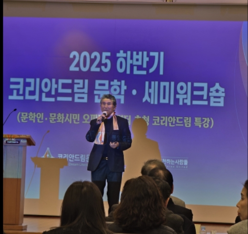 [더코리아저널 전주현 기자] 2025 하반기코리안드림 문학(회장 김유조) 세미워크숍이 지난 11월 18일 오후 3시 여의도 태영빌딩 T-아트홀에서 문학인 및 문화시민 오피니언 리더 등 약 200여 명이 참석한 가운데 성황리 개최했다.