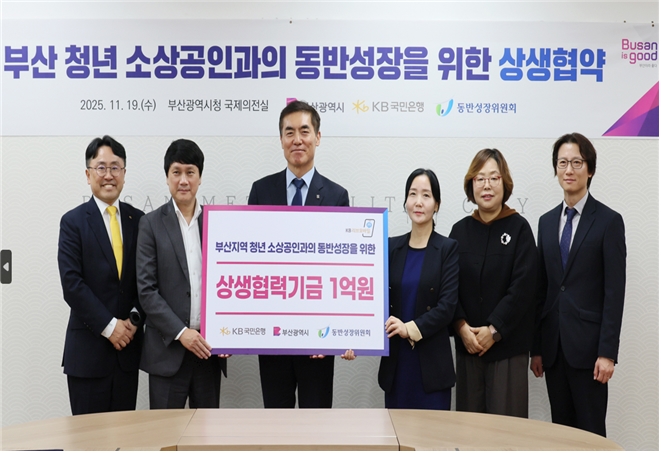 [더코리아저널 김종섭 기자] 부산시(시장 박형준)는 부산 지역 청년 소상공인과의 동반성장을 위해 케이비(KB)국민은행-동반성장위원회와 19일 오후 2시 20분 시청 국제의전실에서 상생협약을 체결했다.